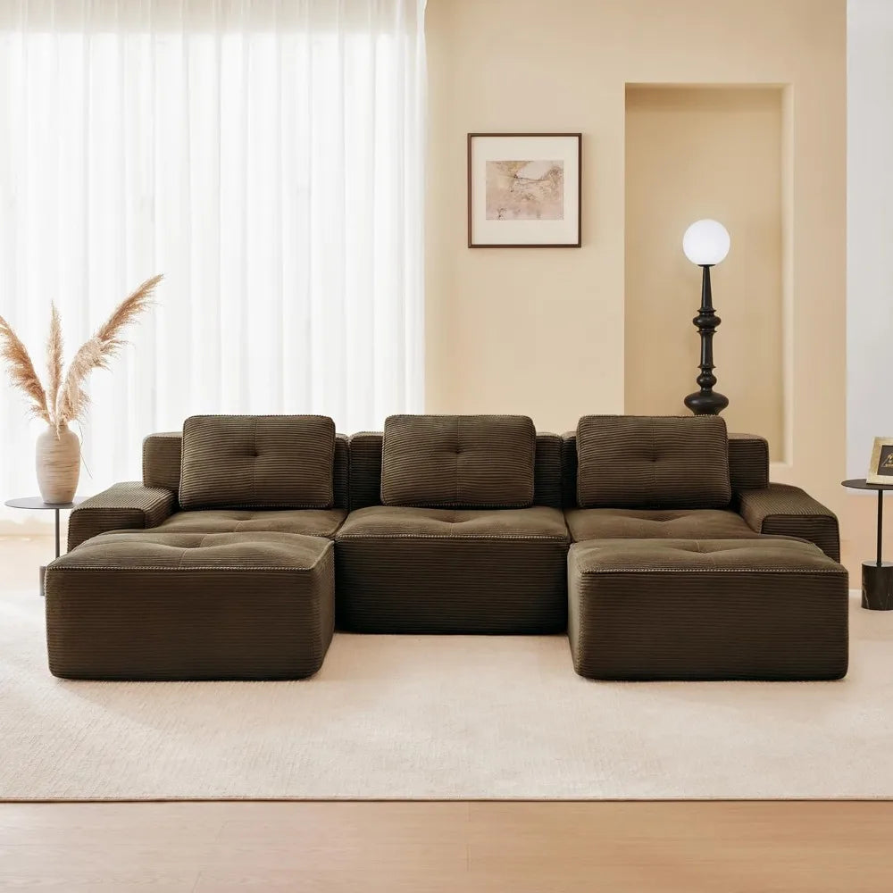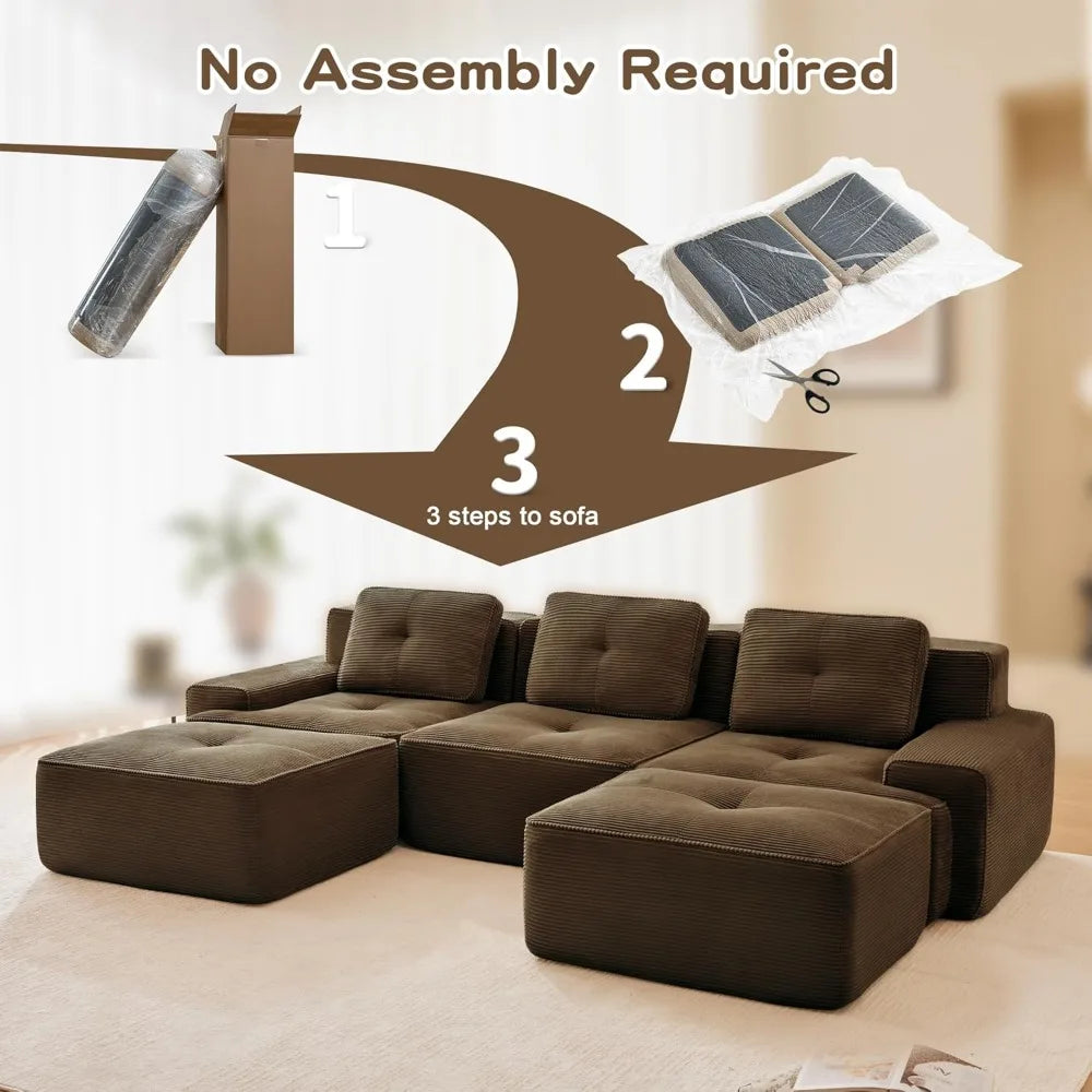 117" U Shaped Modular Boneless Sofa Couch for Living Room,Sectional Large Sofa with Corduroy Fabric, 3-Seater Tufted