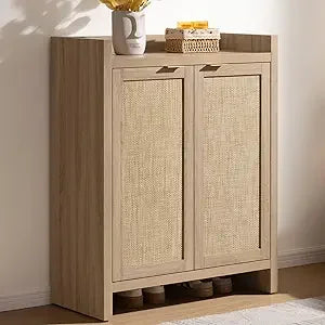24-Pair Rattan Shoe Storage Cabinet with 6-Tier Farmhouse Style Doors and Shelves