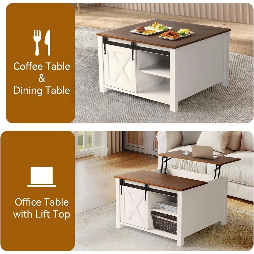 31.5" Square Coffee Table, White Lift Top Coffee Table for Living Room, Morden Farmhouse Coffee Tables with Hidden Storage for S
