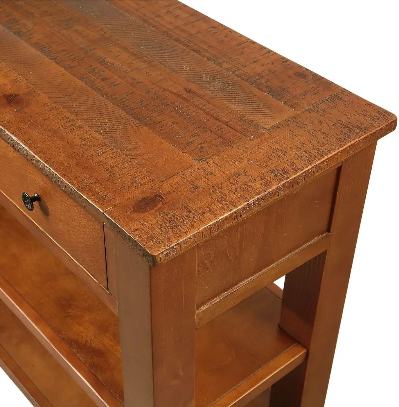48" Solid Wood Console Table,Pine Wood Sofa Table with Storage Drawers and Shelves,Retro Entry Table for Living Room,Hallway,Entryway,Foyer,Brown