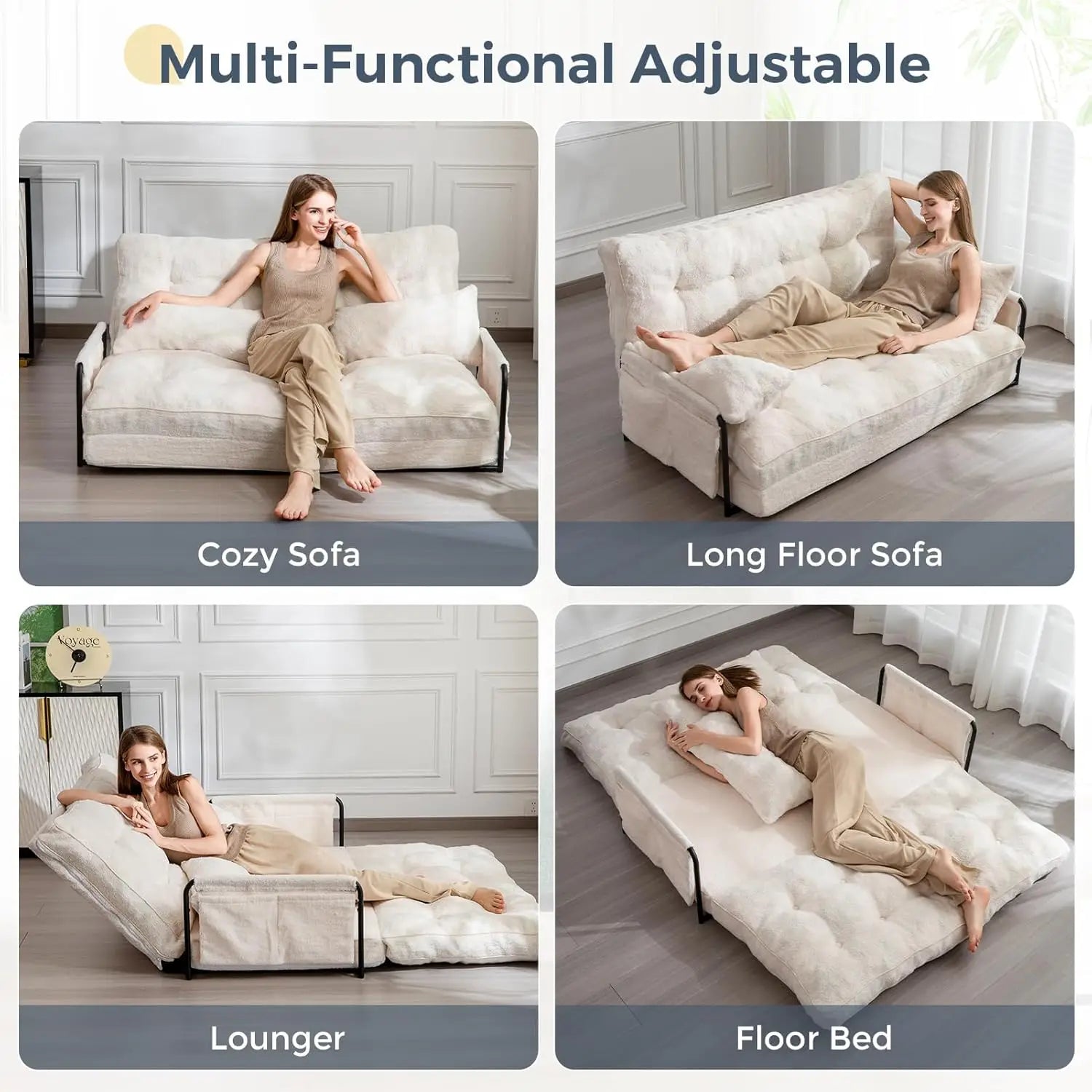 5-Position Adjustment: Customize your comfort through five adjustable settings, enabling you to sit upright, recline, or lie down fully for ultimate relaxation. With a mere adjustment, seamlessly convert from a sofa to a bed, providing versatile options for both seating and sleeping