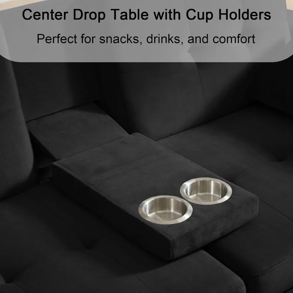 - 【Drop-Down Center Table with Built-in Cup Holders】The center backrest folds down to reveal a drop-down middle table with two cup holders, turning your sleeper couch into the perfect spot for movie nights, drinks, or snacks. Stylish and functional, it enhances your everyday comfort.