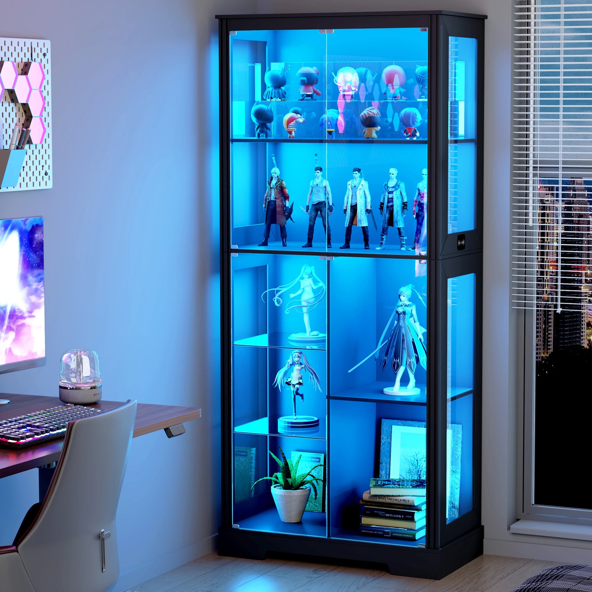 71” Display Cabinet with Glass Doors, Modern Curio Cabinet with 3 Color Lights, 7-Tiers Glass Display Cases for Collectibles,