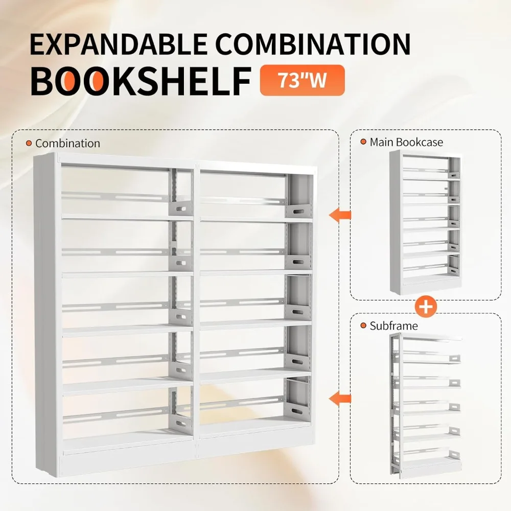 - Stability & Long-Lasting: The book shelf as a whole is made entirely of metal, making it stronger and more stable than wooden book shelves, with a maximum weight capacity of 280lbs per shelf. The metal surface is powder coated, so you can use it with confidence.