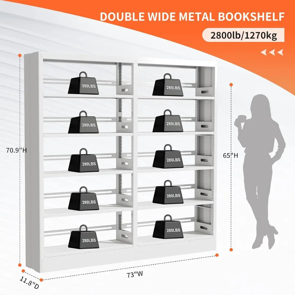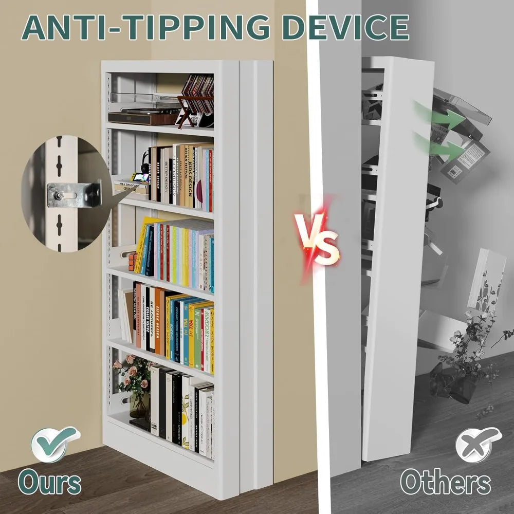 71" Metal Book Shelf, 5 Tier Bookshelf with Adjustable Shelves, Bookshleves and Bookcases, Heavy Duty Library Book Case