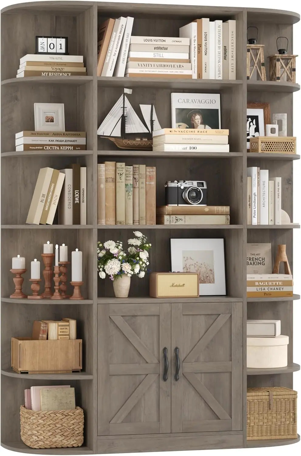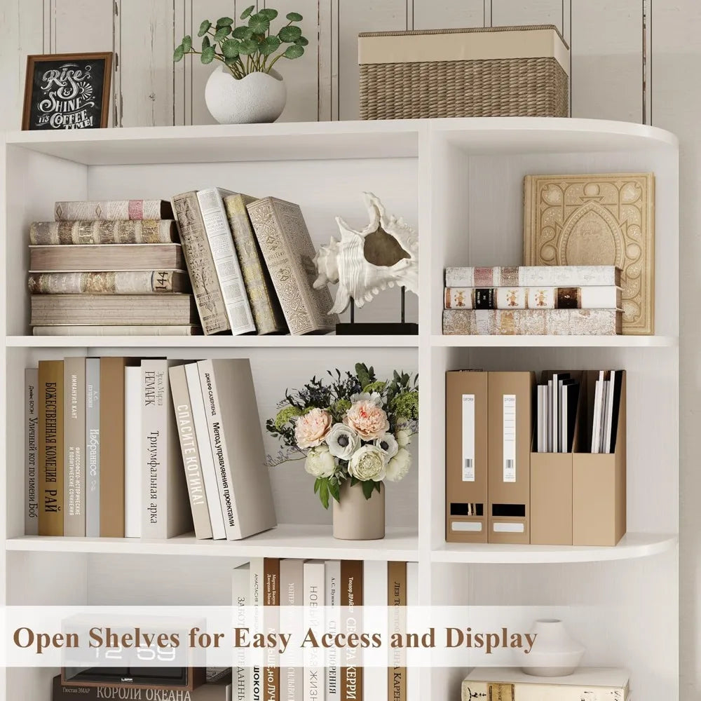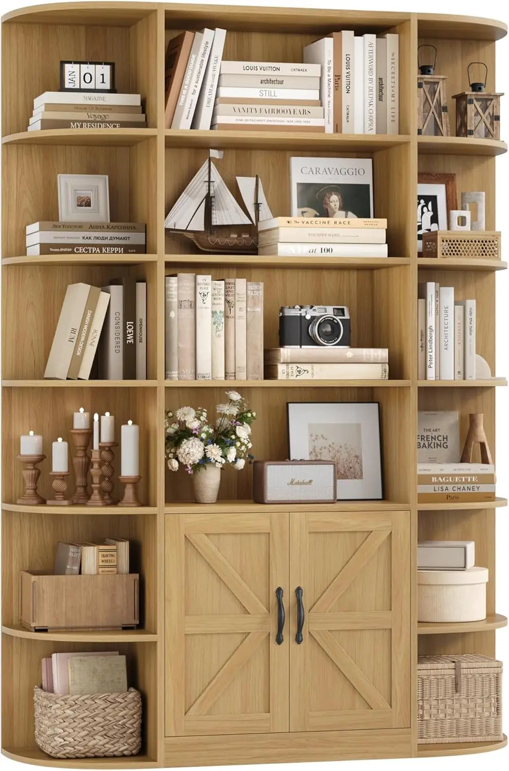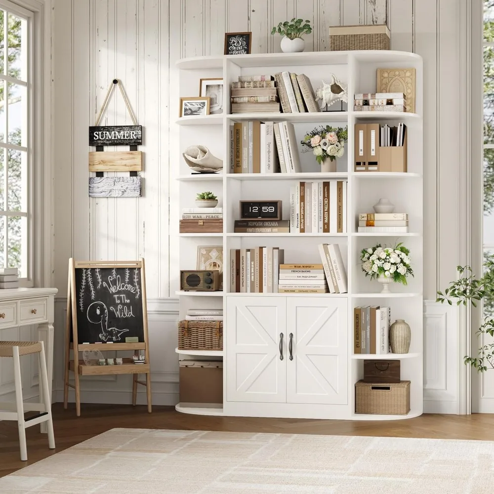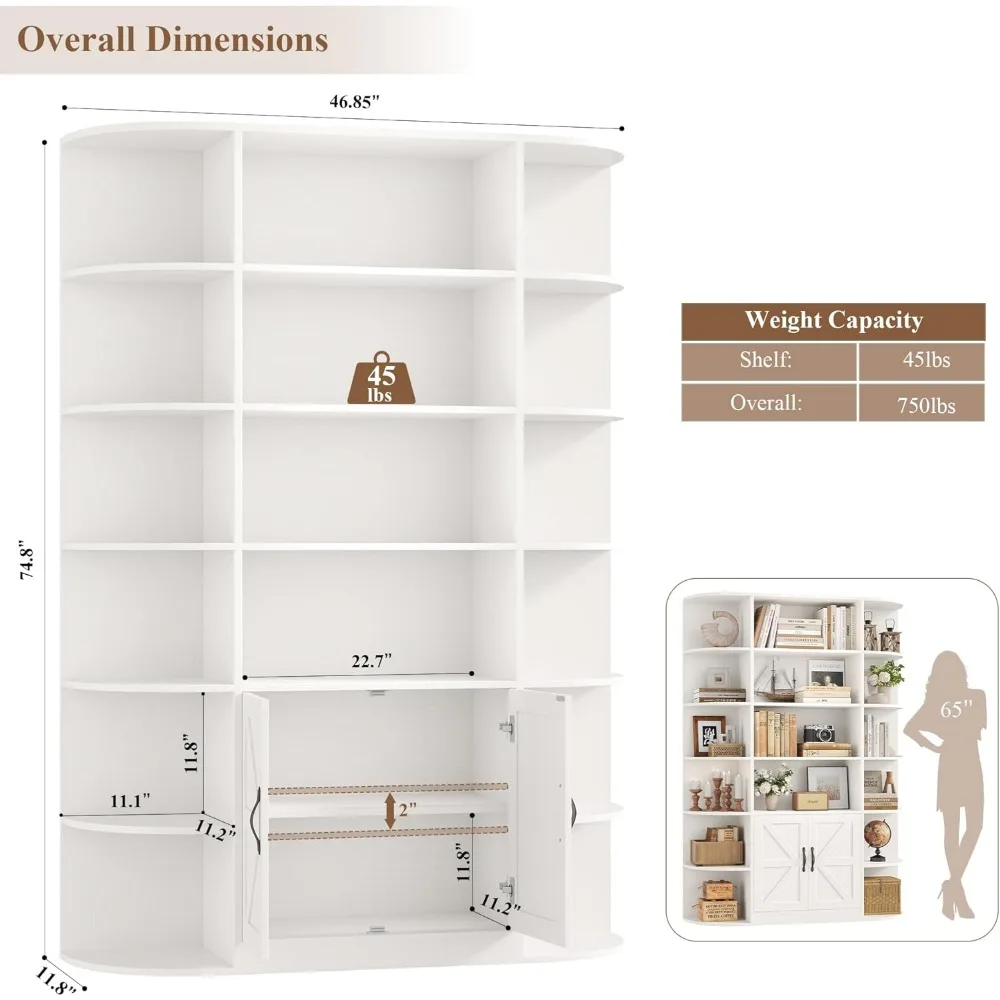 75" Tall Book Shelf and Bookcase, 6 Tier Bookshelf with Storage, 47" Wide Bookcase with Doors, Freestanding Wood Display
