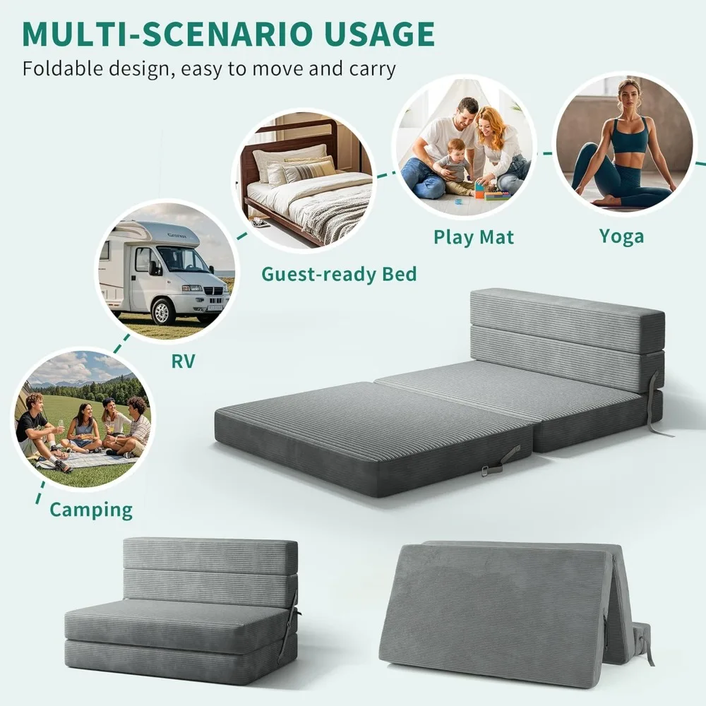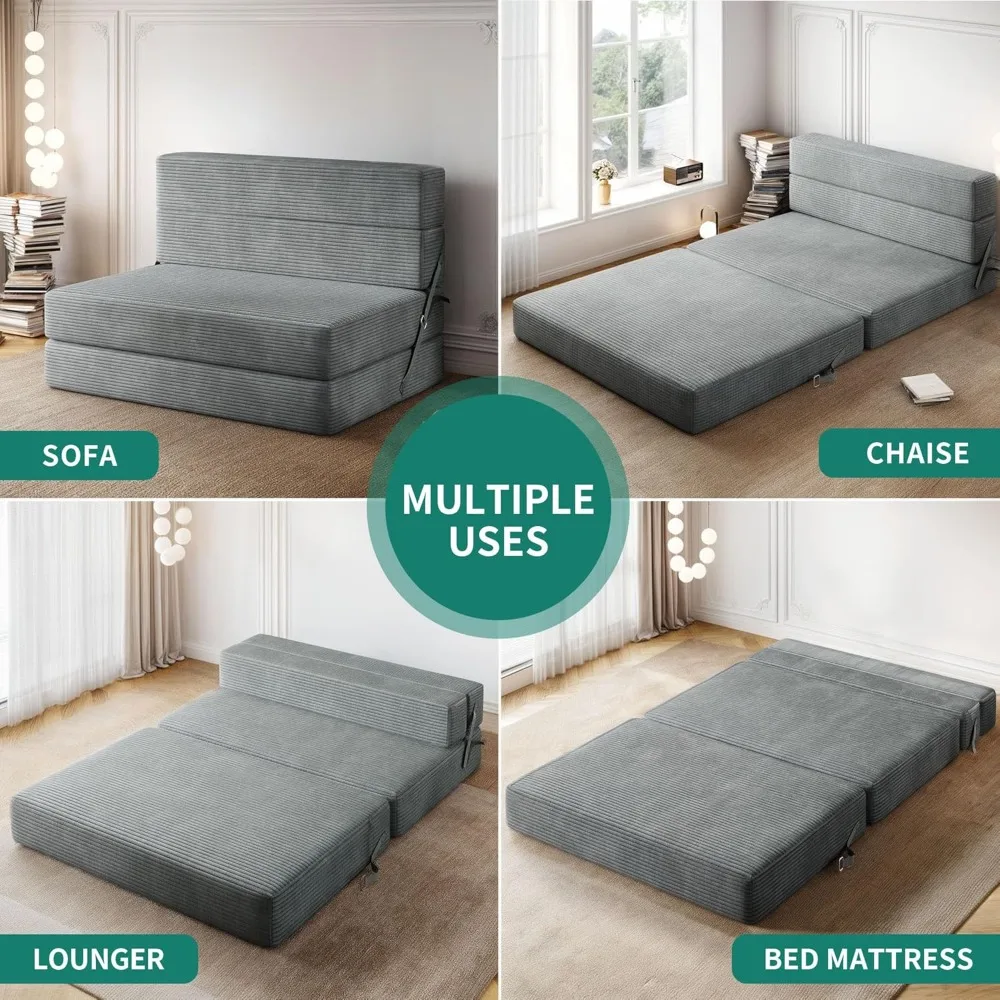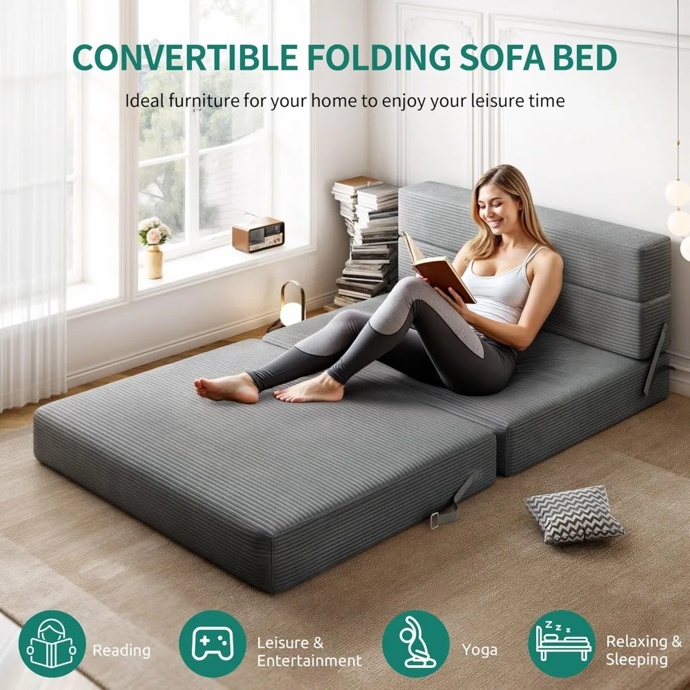 Convertible Folding Sofa Bed, Corduroy Fabric Fold Out Chair Bed, High-Density Memory Foam Floor Futon Couch for Living Room