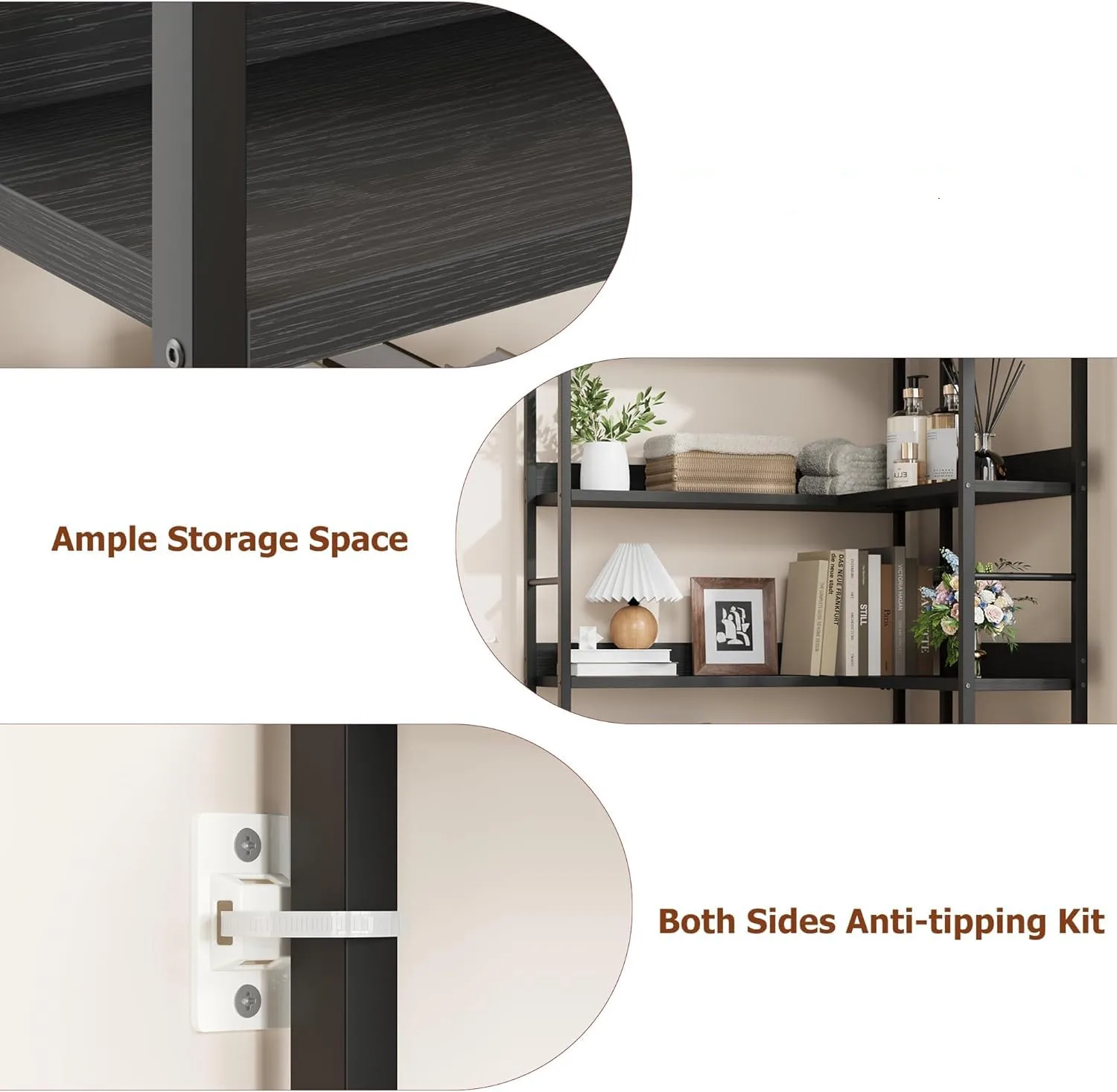 [Easy Assembly & Easy to Clean] Our industrial corner bookshelf comes with step-by-step illustrated instructions and necessary accessories to help you finish the whole installation effortlessly, the hardware and parts are labeled on each piece for your needs, besides, the surface is smooth and waterproof, just clean it with a damp cloth