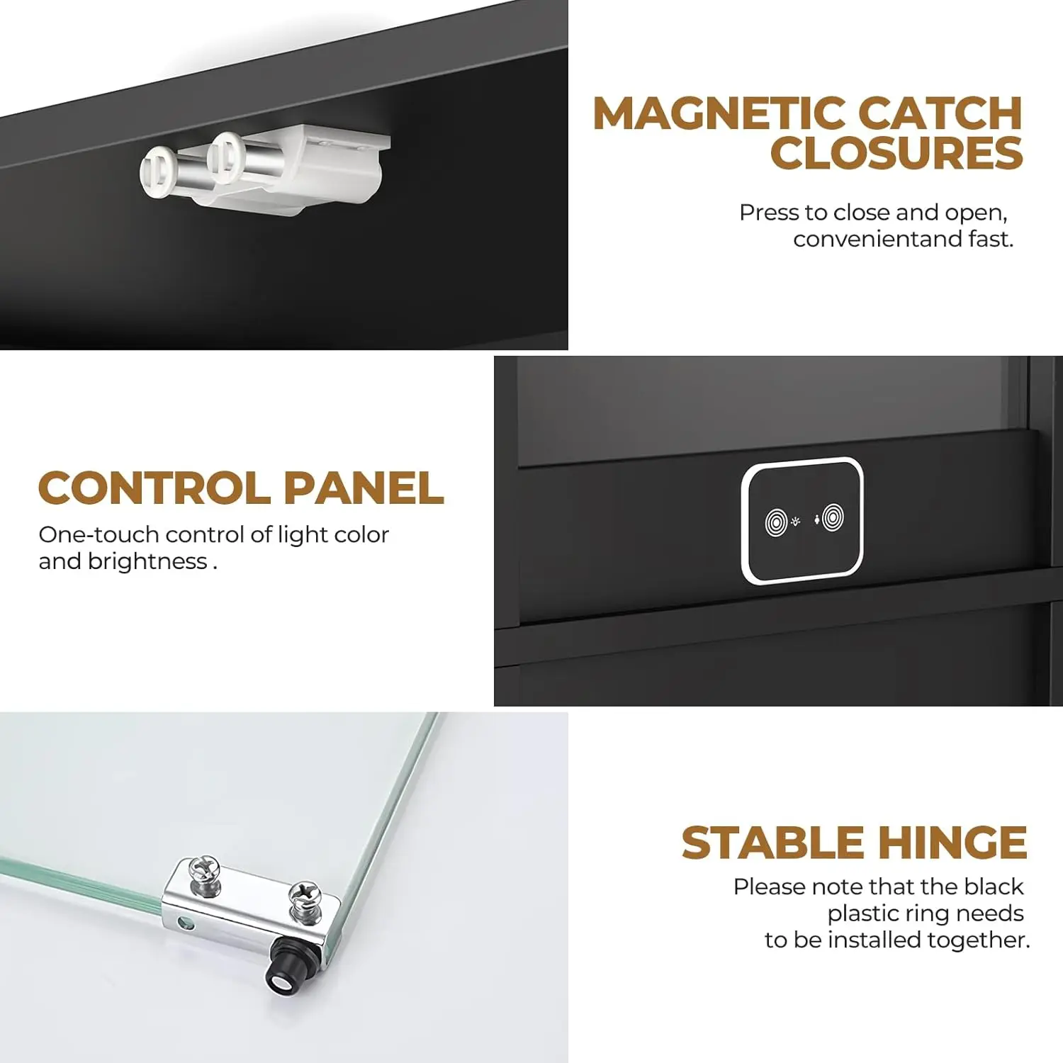 - 【3 Color LED Lights】Display cabinet features 3 color LED lights that add a modern touch to your living space and allow for clear display even in the dark. 3 colors lights: white light, warm light, blue light, brightness adjustable.