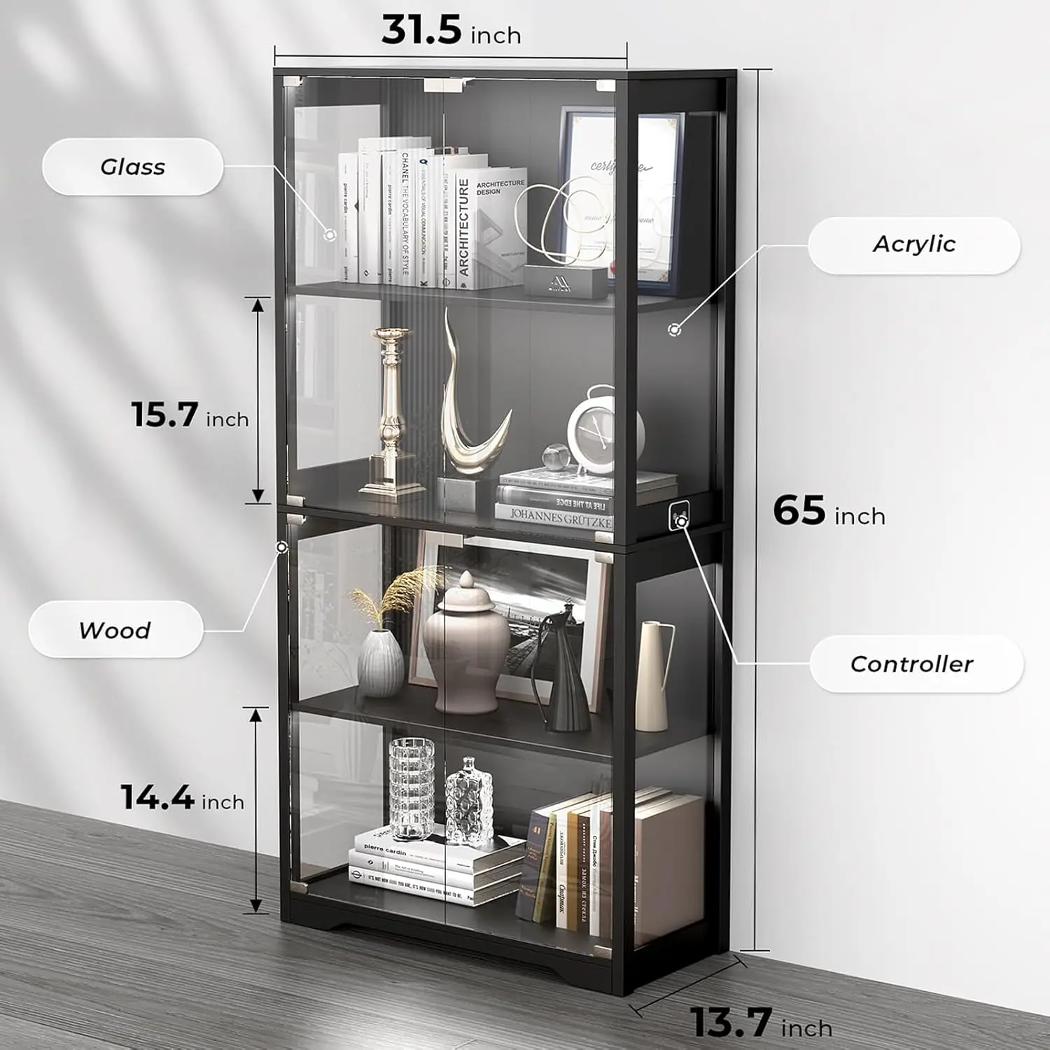 - 【Large Storage】Boasting spacious dimensions of 31.5" W x 65" H x 14" D, this display cabinet offers ample large storage space on 4 tiers, each level accommodating items of different sizes.
