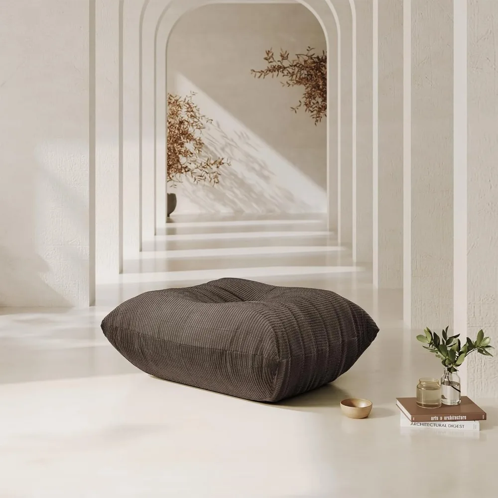 【Premium Corduroy Fabric】The bean bag sofa chair is made of high-quality corduroy material, featuring distinct vertical stripes on the surface. It is skin-friendly and stylish, with a soft and delicate touch, providing good warmth. The fabric is thick and durable, ensuring long-lasting use. 【Feature】Our lazy floor sofa will revolutionize your perception of furniture. With its stylish armless design and elegant button detailing, it’s both fashionable and fun. Whether you place this bean bag chair in your home, apartment, or gaming area, it will create the perfect living space for you. 【Supportive Memory Foam Cozy】The sofa is filled with high-density memory foam, offering a soft and resilient feel. Its non-slip bottom design enhances stability, ensuring a secure seating experience. Additionally, the chair is lightweight and easy to move around, making it versatile for any space. 【Ergonomic Design】The comfortable sofa chair features an ergonomic curve design that aligns with the body's natural contours. Whether you're lounging, gaming, reading, or enjoying a cozy nap, this bean bag chair provides an exceptional seating experience that adapts to your needs. 【No Assembly Required】No assembly is required for the bean bag—simply open the compressed package and let it expand for 24-48 hours to regain its shape. After the total expansion, you can recline and have a fantastic time.
