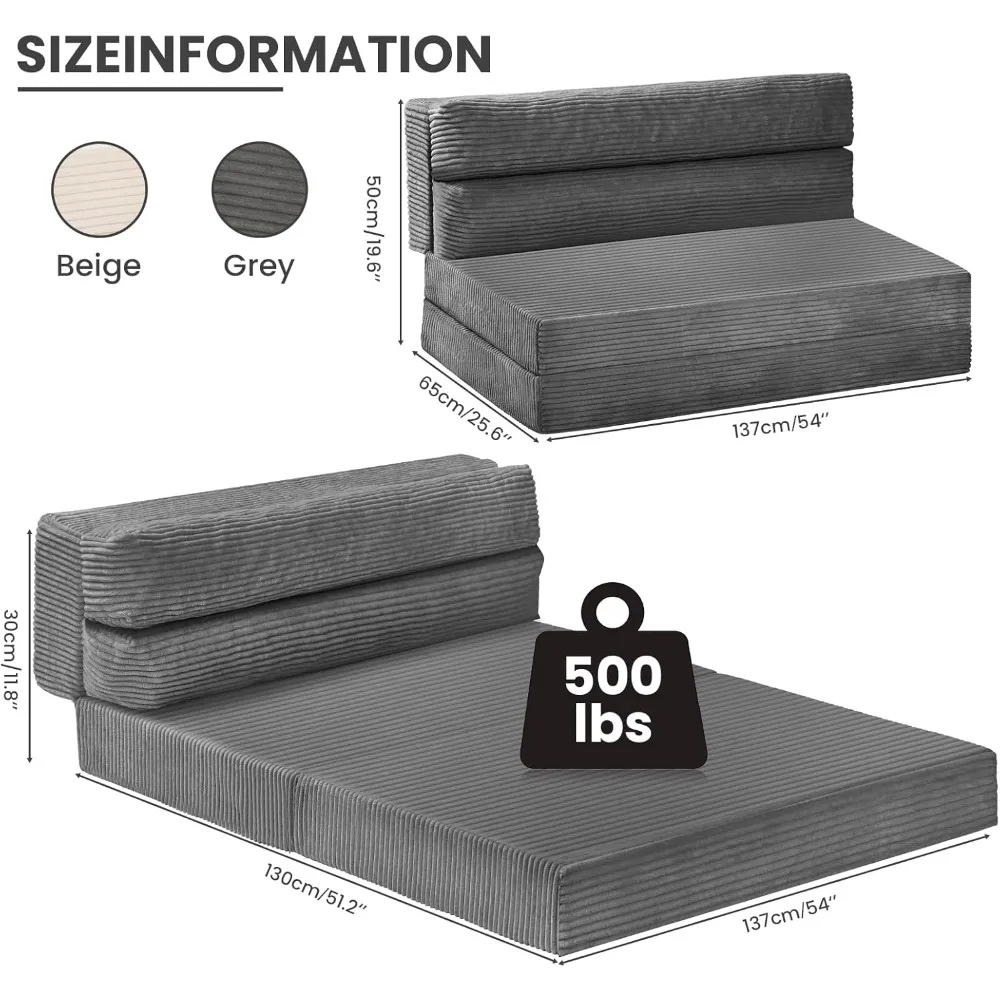 - Luxurious Fabric: This folding sofa bed adopts corduroy fabric, whose soft and elastic characteristics bring customers excellent comfort experience. In addition, the breathability and wear resistance of corduroy ensure the durability and comfort of the sofa bed in daily use, allowing you to relax easily in any occasion.
