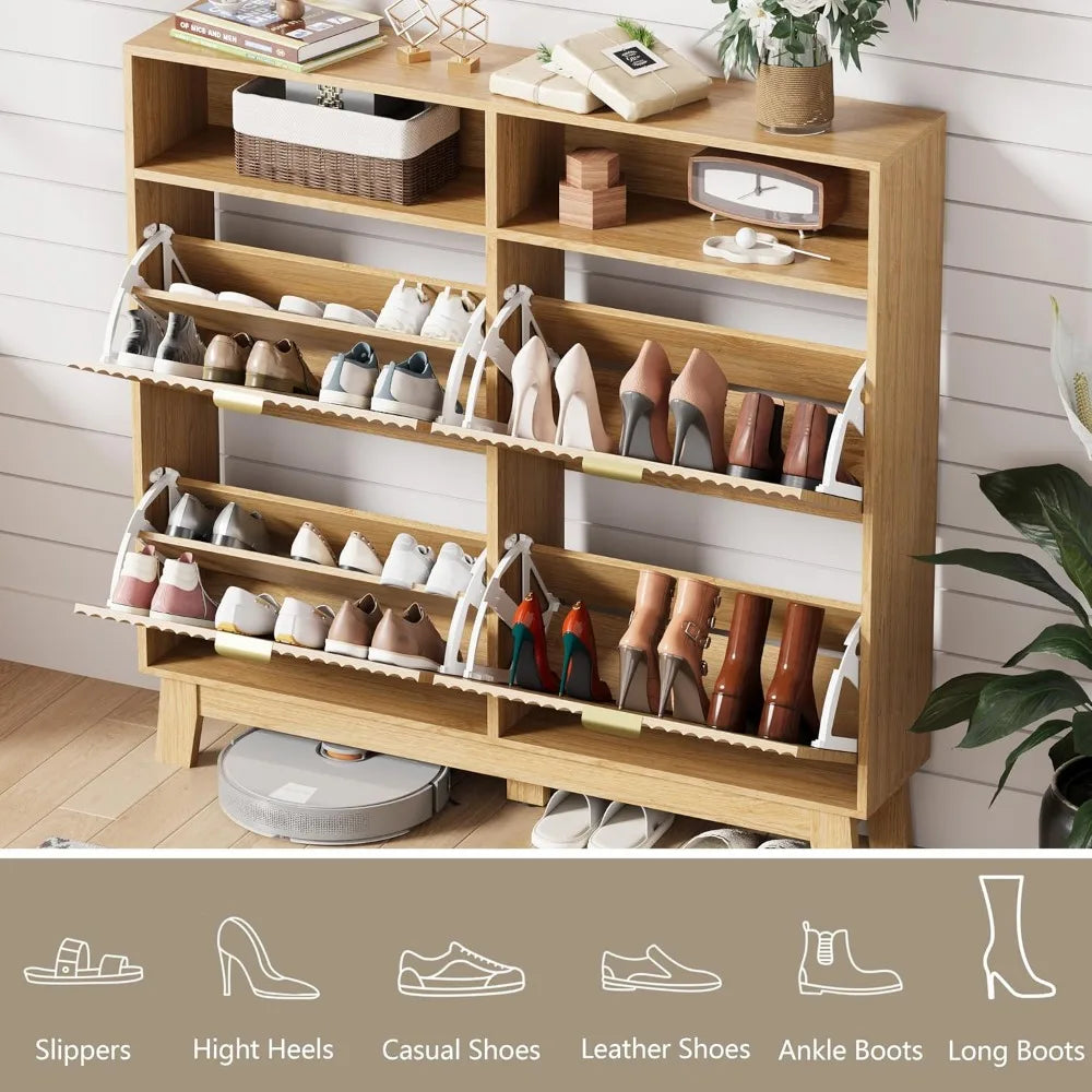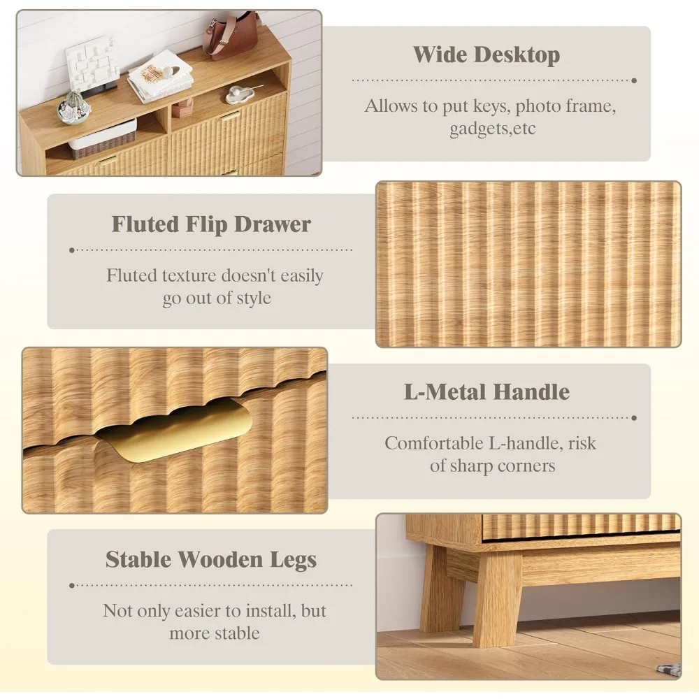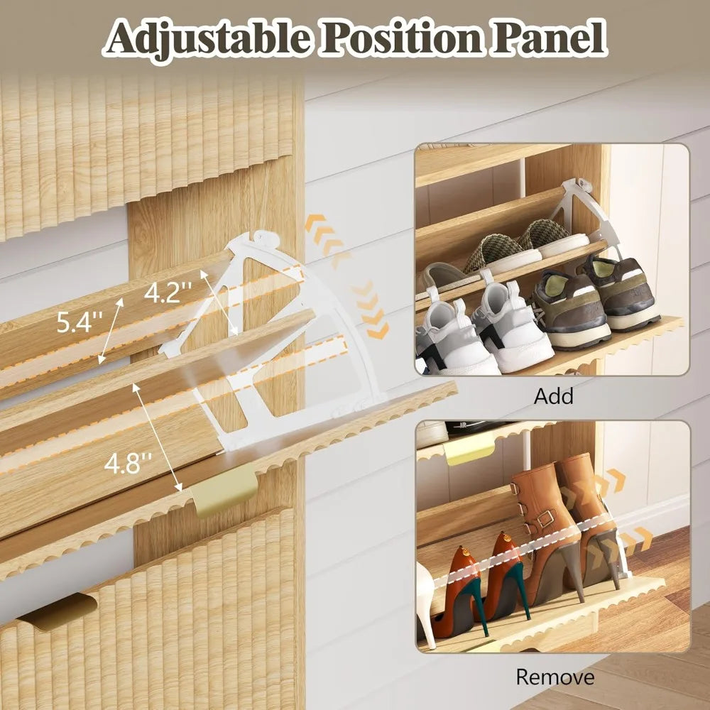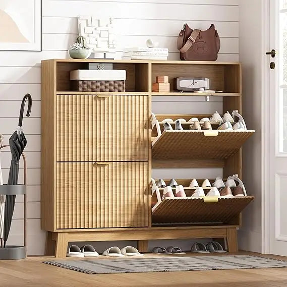 Freestanding Wooden Shoe Cabinet for Entryway with 4 Flip Drawers and Top Storage Cubby, Fluted Narrow Organizer