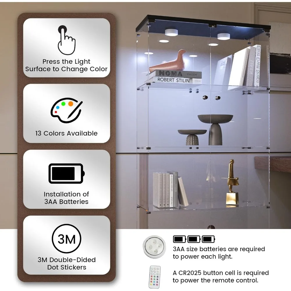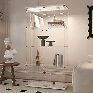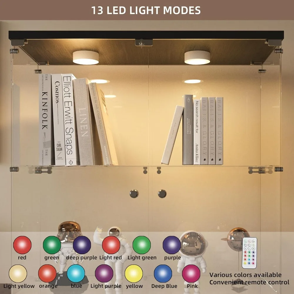 - Quick Installation: Designed for convenience, this glass display cabinet can be easily assembled using its quick installation process. Simply peel off the double-sided tape and attach the lights to the top of the cabinet. No complicated wiring or tools required, making it a hassle-free setup