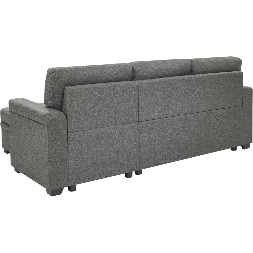 Gray Modern L-Shaped Sectional Sofa with Reversible Chaise, Storage, and Pull-Out Sleeper Bed for Living Rooms and Apartments