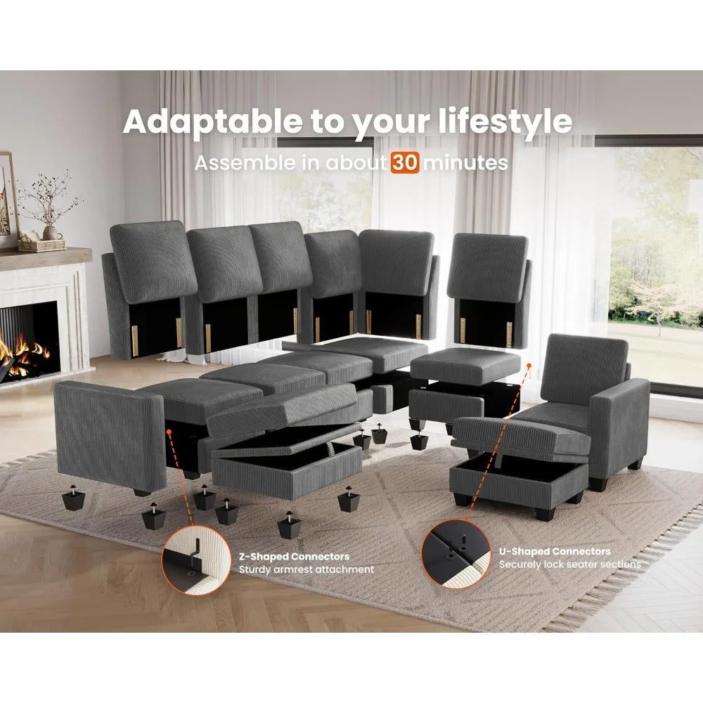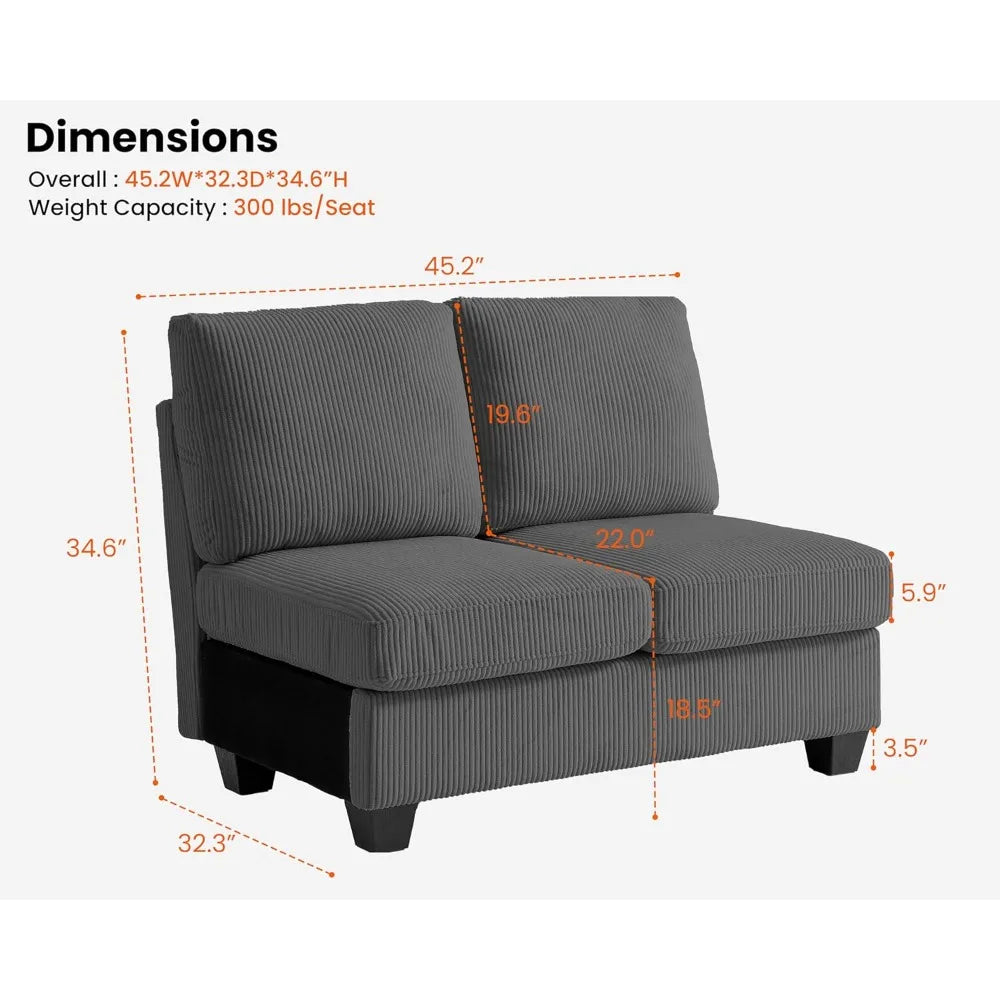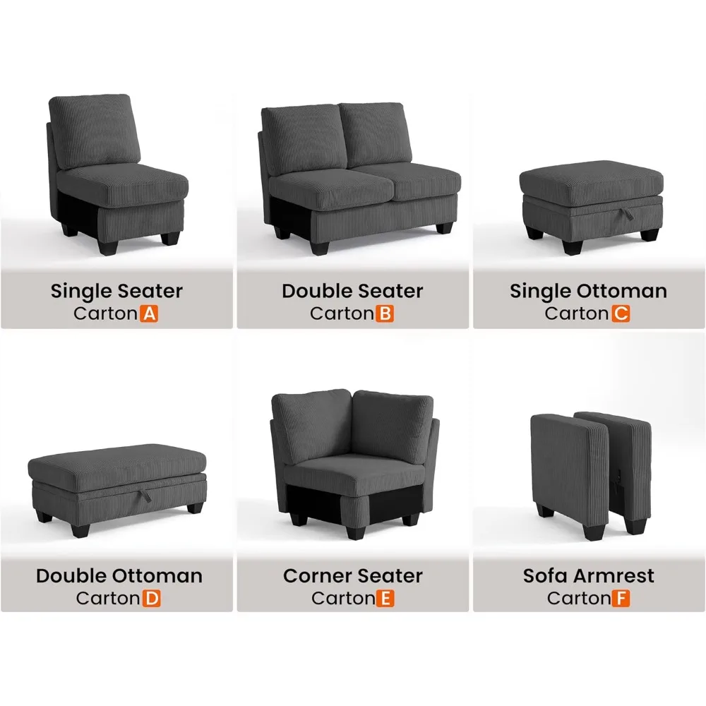 Middle Module for Modular Couch, Corduroy Customizable Chaise, Storage Ottoman for Sectional Sofa, Armrest, Single/Double Seater