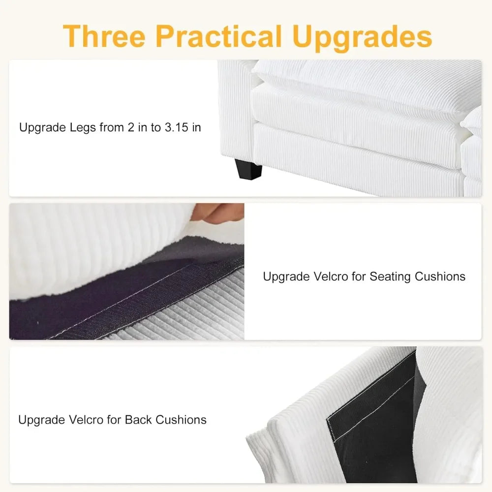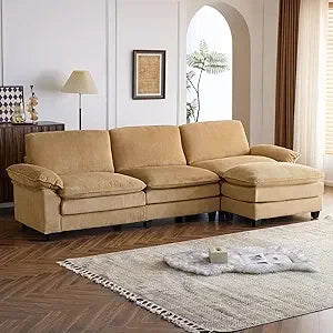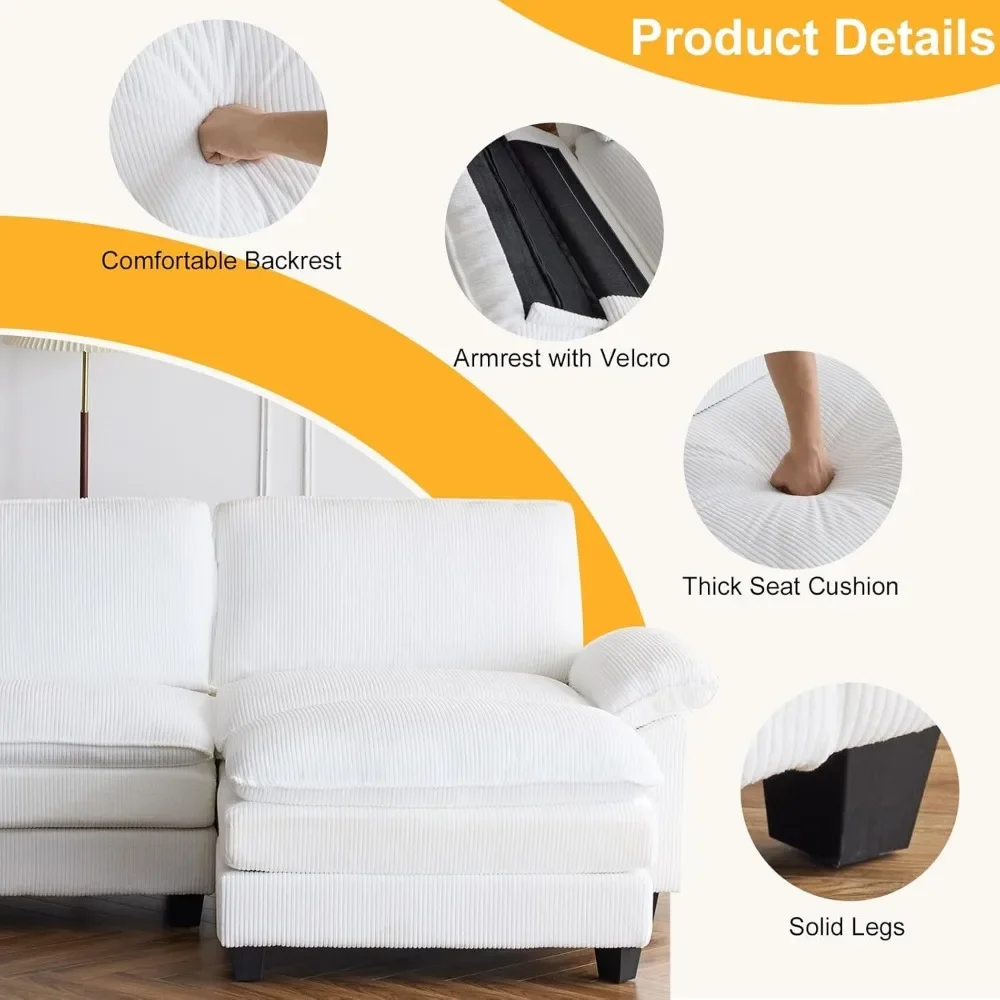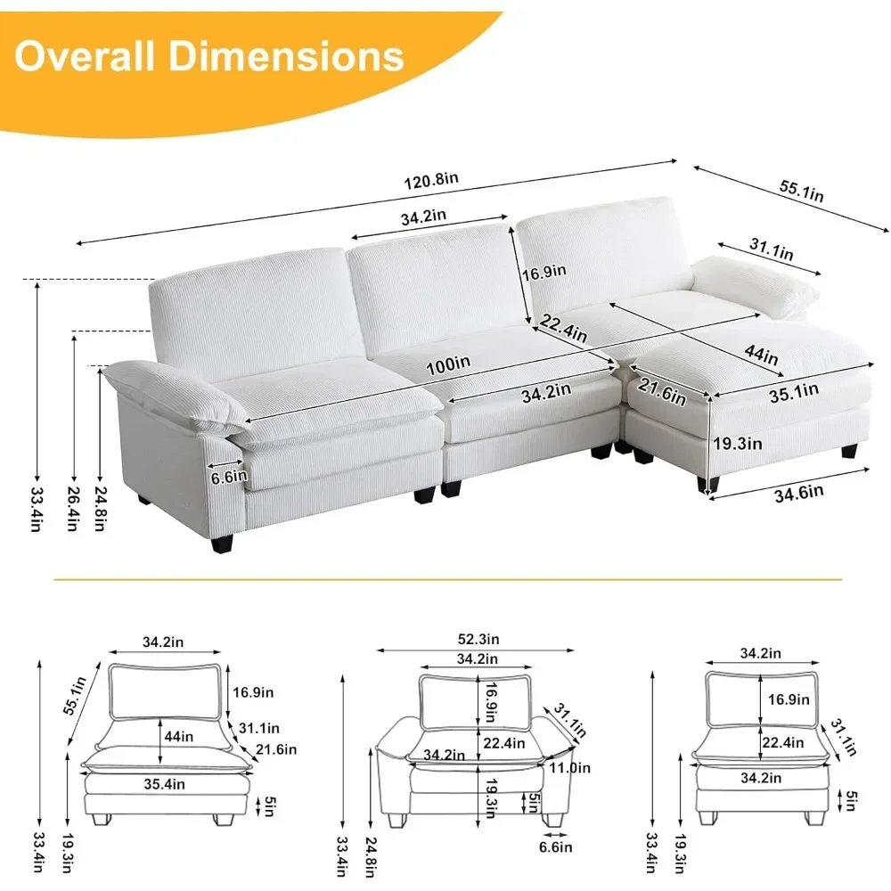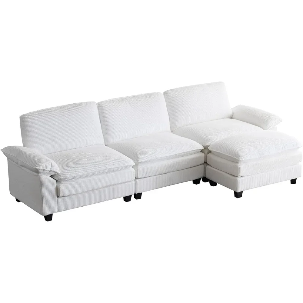 Sectional Sofa Modular Deep Seat Sofa Couch with Ottoman, Corduroy Sofa Sleeper Comfy Upholstered Furniture for Living Room, Ap