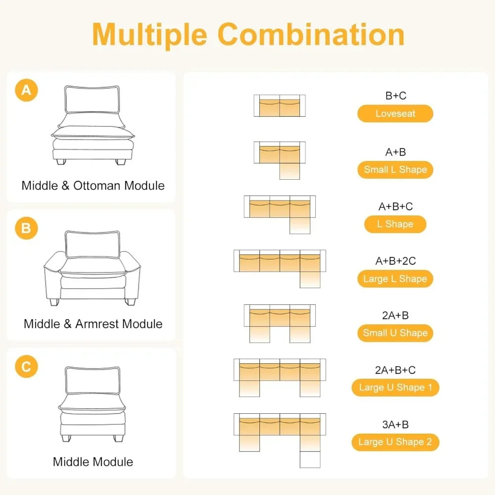 - Flexible Modular Combination - It is easy to customize different sofa couches with each modular piece. You can build your own couch such as a 2-seat L-shape sofa, a 3-seat L-shape sofa, or a 4-seat L/U-shape sofa according to your imagination and needs.