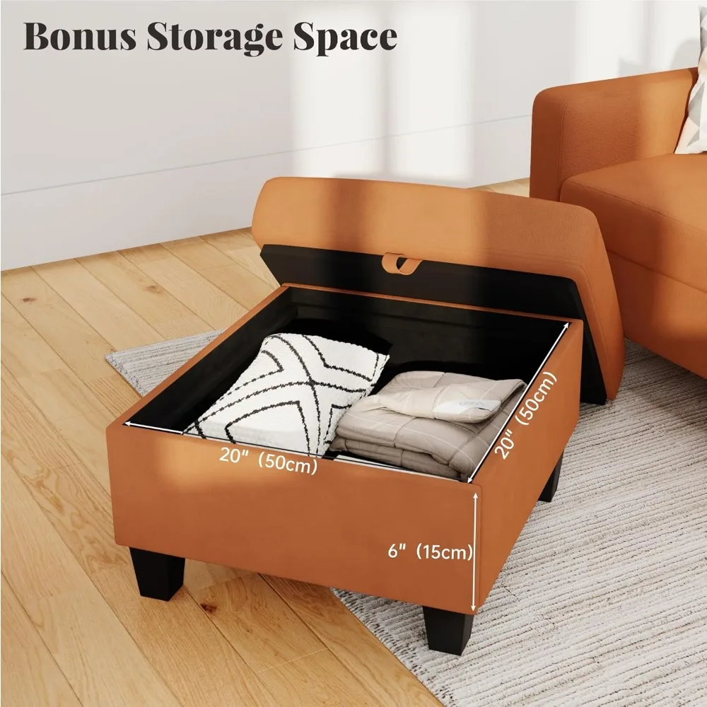 - Couch with Storage: Maximize your space with the ottoman’s built-in storage compartment and the sofa armrests’ organizational features, perfect for storing seasonal clothes, blankets, pet toys, children’s items, or remotes, helping keep your combined living room sofa area neat and tidy.