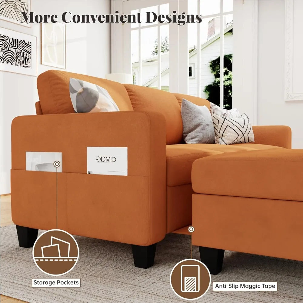 - L Shaped Couch: This 78-inch L-shaped living room couch includes a movable ottoman for flexible placement, allowing you to configure it as a left or right facing chaise lounge, standalone seat, or entryway footrest, perfect for compact spaces like apartments, dorms, studios, or basements, making it an ideal choice for renters or students.