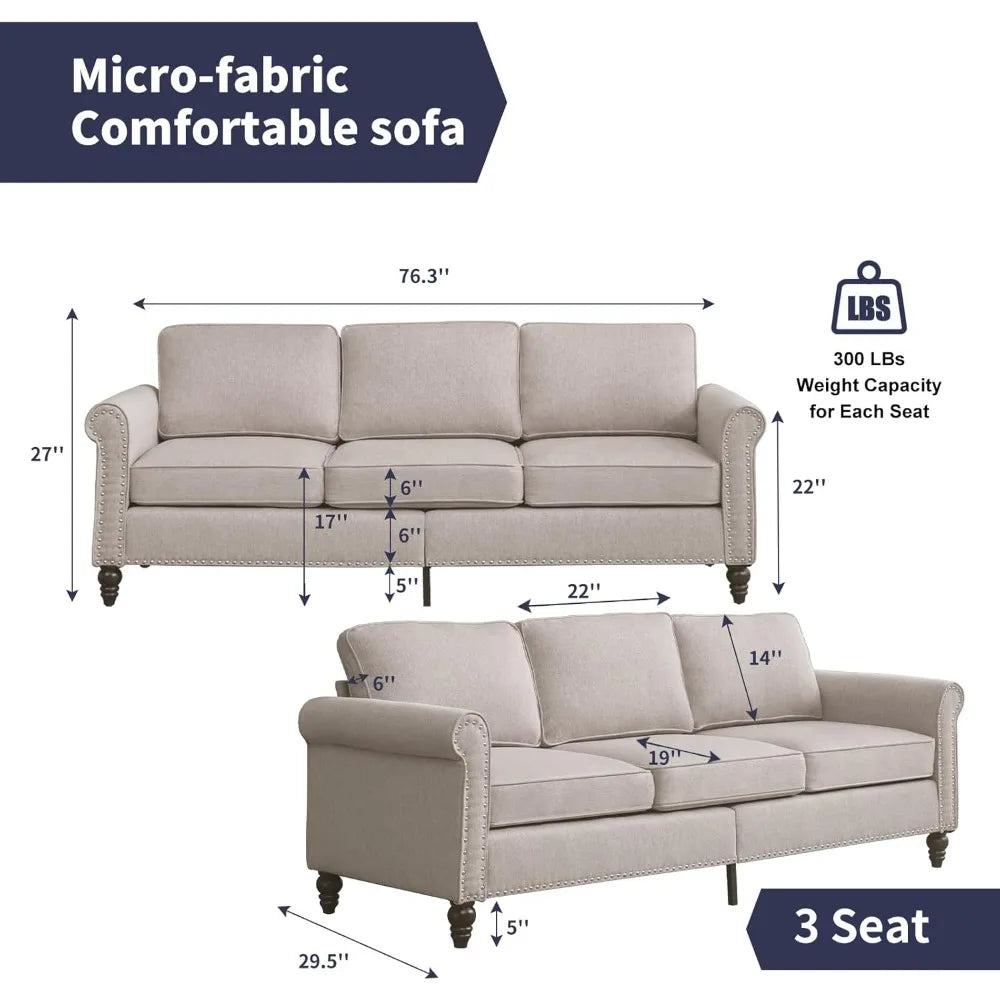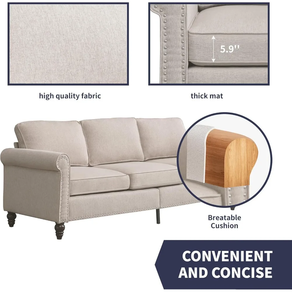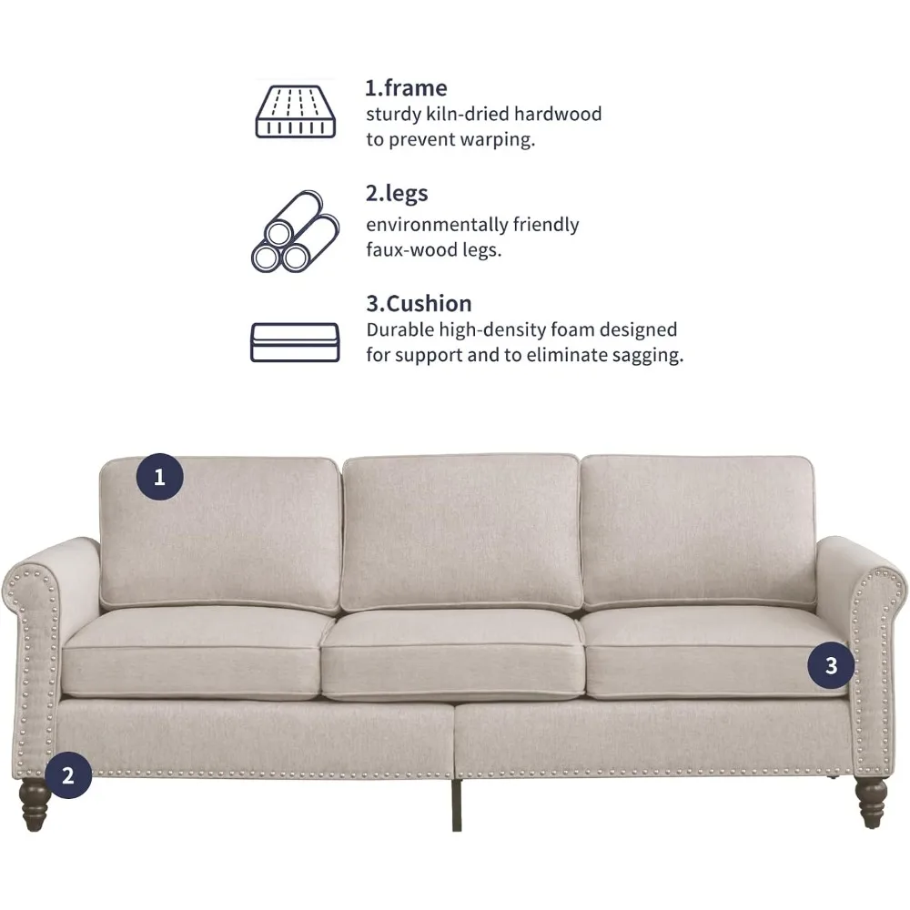 - 💖[Modern and Elegant Design] Our 3-seat sofa adopts simple color and neat line design, which is suitable for most styles of living rooms and bedrooms. Soft fabric surface and comfortable cushion, backrest, rivet decoration, gourd shape legs, simple and good looking.