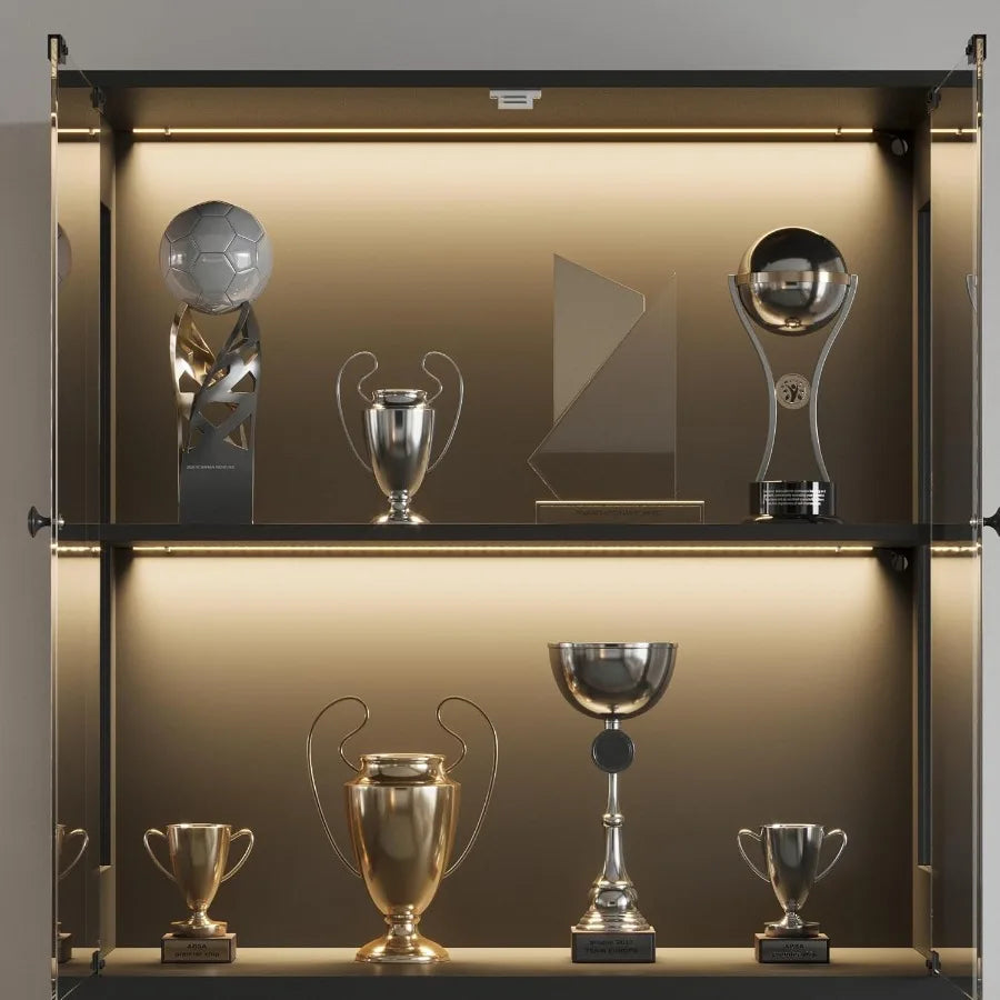 Trophy Case with Glass Doors 4Tier Display Case with Sensor LED Lights Display Cabinet with Shelves for Collectible Black Frame