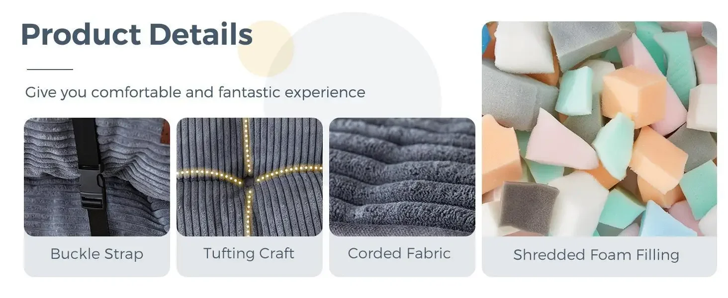 - Comfortable Shredded Foam Filling: The cushion is filled with shredded foam, meticulously crafted to provide superior comfort and support. This innovative filling molds to your body contours, offering personalized cushioning that relieves pressure points and promotes relaxation