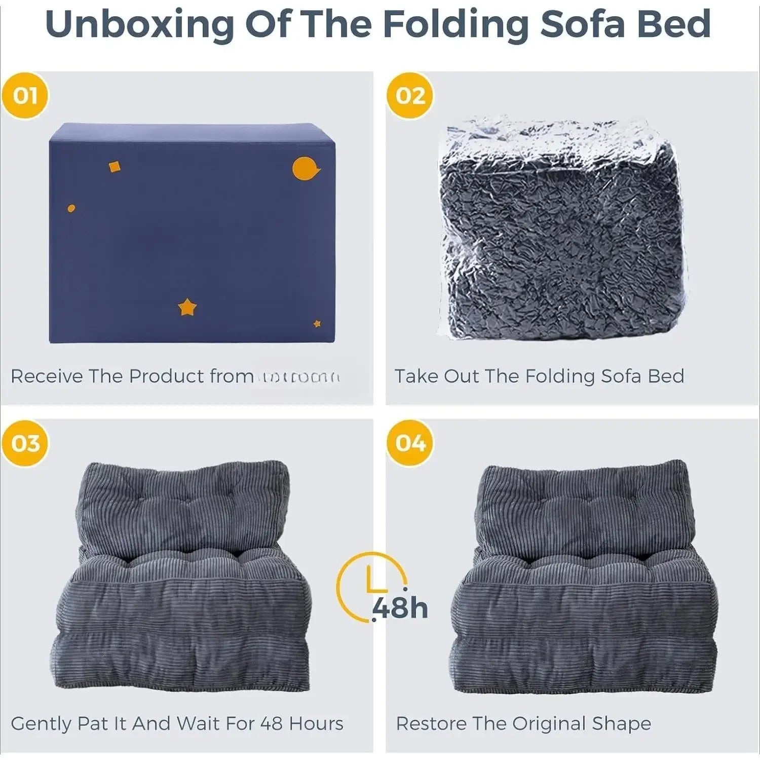 - Important Note: The chair bed is compressed and vacuum-sealed to reduce space and carbon dioxide emissions during shipping. Upon unpacking, allow the sofa bed to breathe for 48 hours to regain its original shape and size